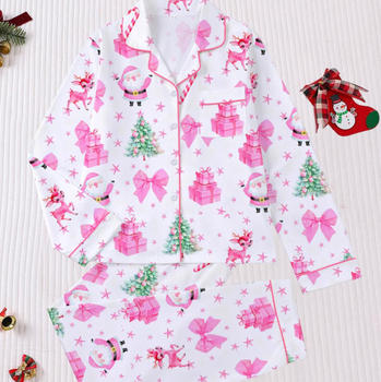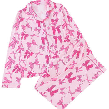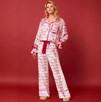 Mùa Đông Sang Trọng 2 Mảnh Thiết Lập Tùy Chỉnh Màu Hồng Dài Tay Áo Quần In Trang Phục Ấm Cúng Lụa Satin Pajama Pjs Pyjama Set Cho Phụ Nữ