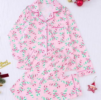 2024 Bán Buôn Mùa Đông Ấm Cúng 2 Mảnh Cotton In Trái Tim Dễ Thương Ngủ Mặc Dài Tay Áo Pijamas Pjs Pyjama Đồ Ngủ Bộ Đồ Ngủ Thiết Lập Cho Phụ Nữ
